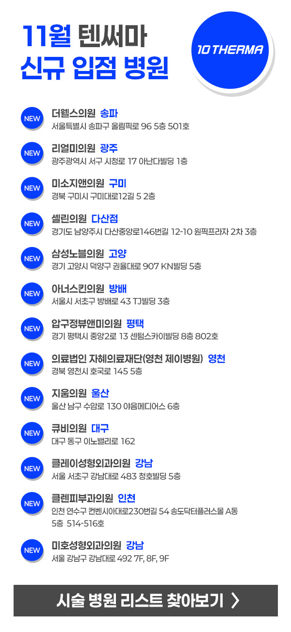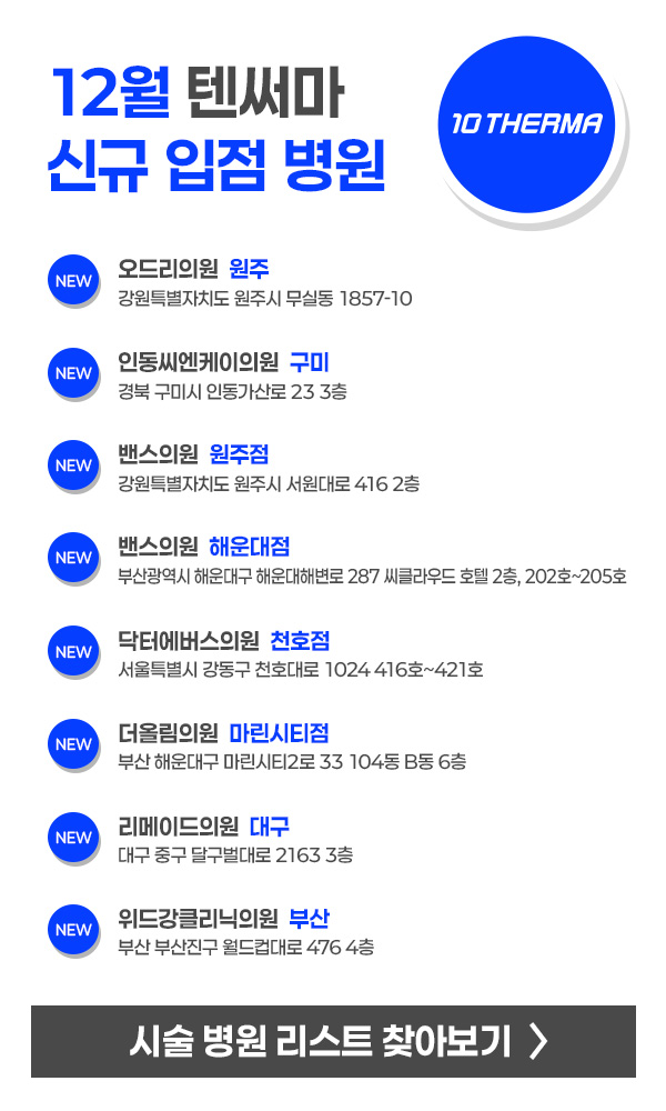 닫기 하루동안 보지않기 텐써마 효과는 텐써마 텐써마 팁 정품팁 인증 데모문의 병원찾기 마케팅 자료 회사소개 텐텍몰 바로가기 기재하신 개인정보의 수집 및 이용에 동의합니다. (필수) 기재하신 개인정보의 수집 및 이용에 동의합니다. (필수)