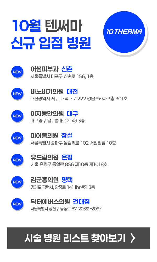 닫기 하루동안 보지않기 텐써마 효과는 텐써마 텐써마 팁 정품팁 인증 데모문의 병원찾기 마케팅 자료 회사소개 텐텍몰 바로가기 기재하신 개인정보의 수집 및 이용에 동의합니다. (필수) 기재하신 개인정보의 수집 및 이용에 동의합니다. (필수)